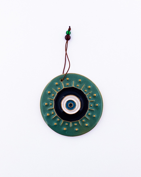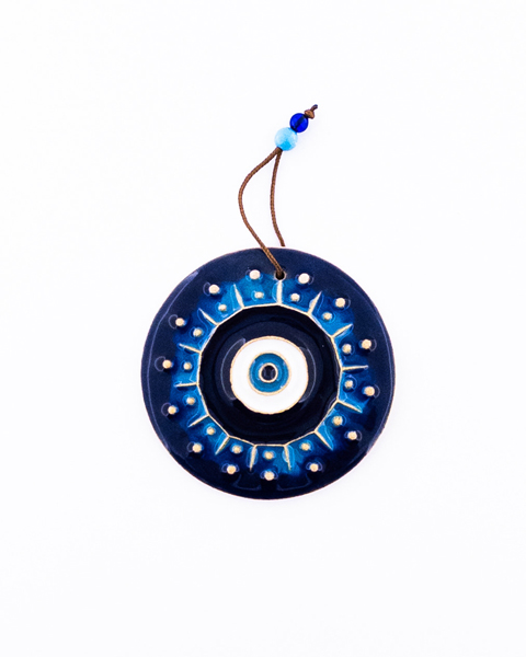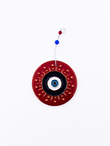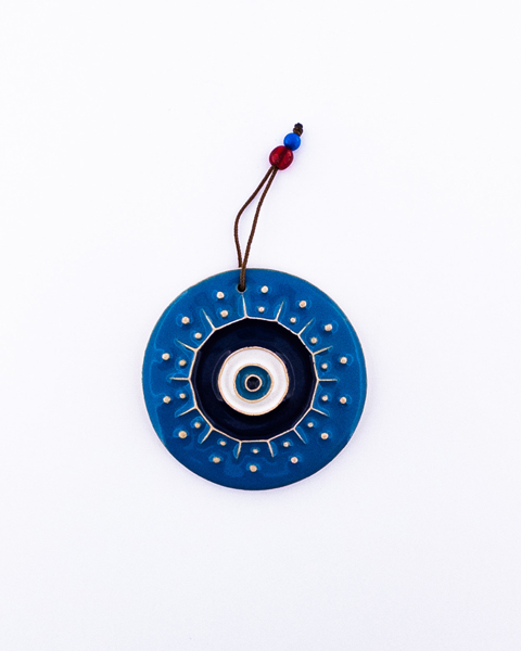 آویز خشتی سفالی با لعاب رنگی و طرح چشم نظر – محافظت در برابر چشم زخم و دکور زیبا