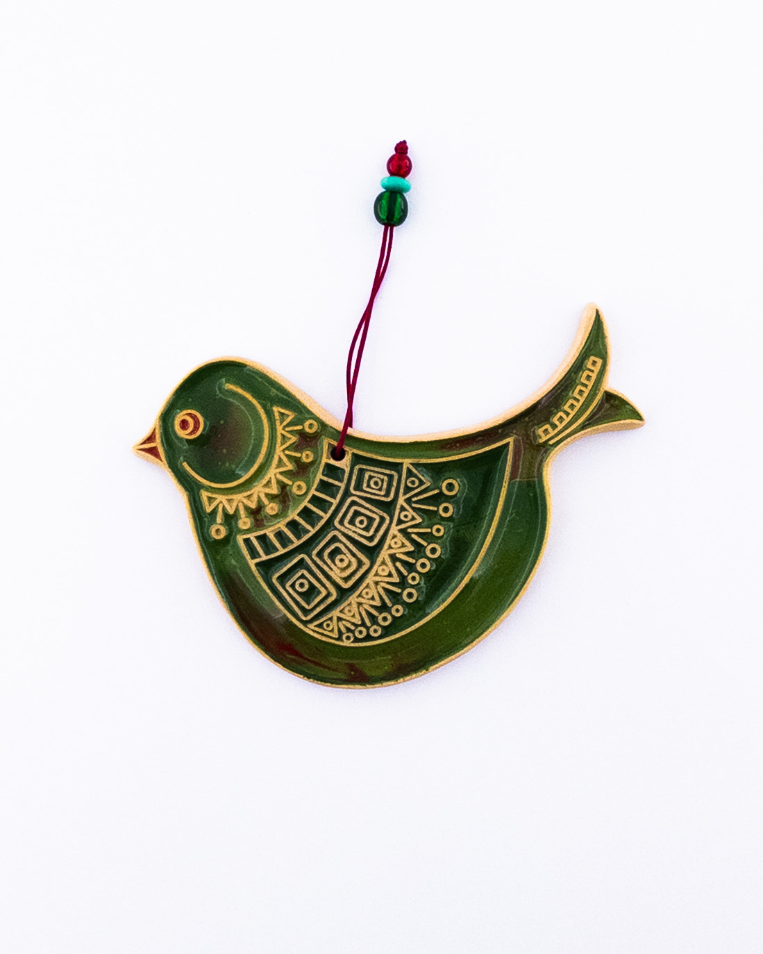 Green Geometric Bird Clay Hanging – Symbolic Handmade Decor & Gift