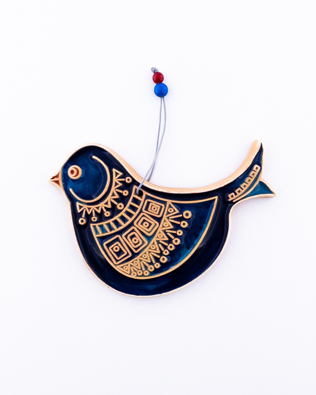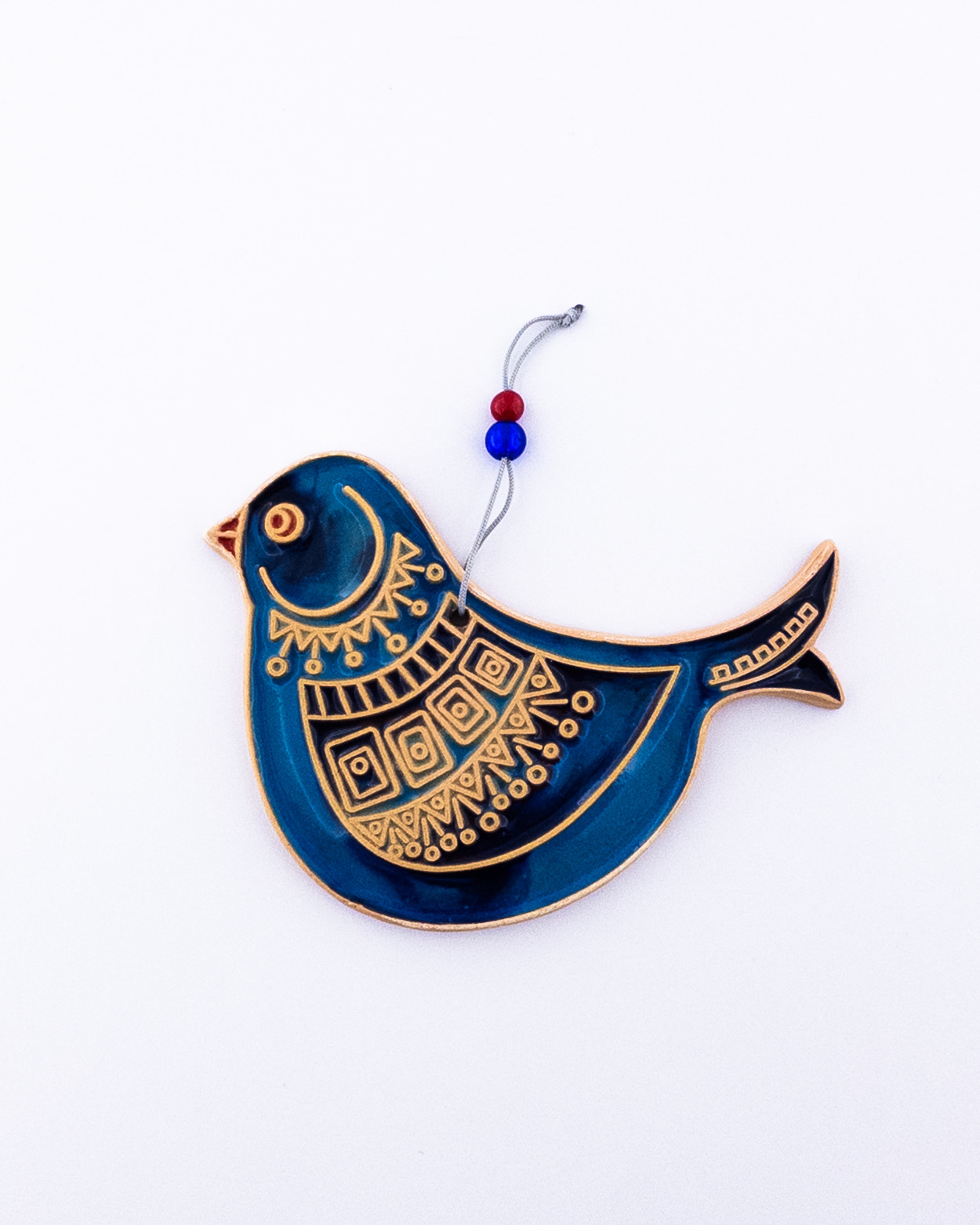 آویز خشتی پرنده با نقوش هندسی – هنر دستی برای دکور و هدیهای نمادین