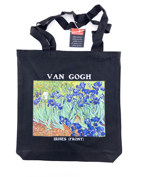 تتبگ مشکی با چاپ نقاشی «زنبقها» اثر ونگوگ – رنگارنگ، هنری، مناسب هدیه خاص