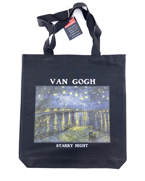 تت بگ مشکی با چاپ نقاشی «شب پرستاره بر فراز رود رون» اثر ونگوگ – هنری، خاص، مناسب هدیه