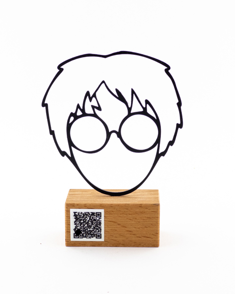 تندیس فلزی طرح هری پاتر با پایه چوبی راش گرجستان و QR کد