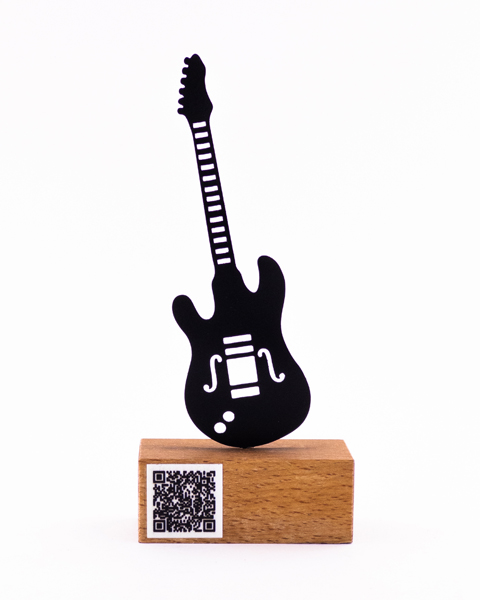 این تندیس، گیتار الکتریکی را در قالبی مینیمال و فلزی بازآفرینی کرده—فرمی که نهتنها ساز را نشان میدهد، بلکه روح موسیقی را در خود دارد. خطوط ساده و جزئیات نمادین مانند پیکاپها و فرتها، یادآور لحظههاییست که صدا از سکوت زاده میشود.