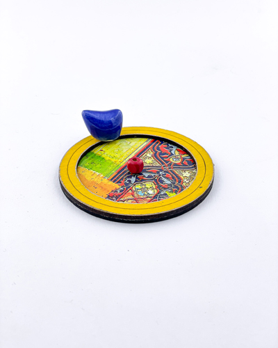 Round wooden Ja'udi with ceramic bird - artistic design in various colors