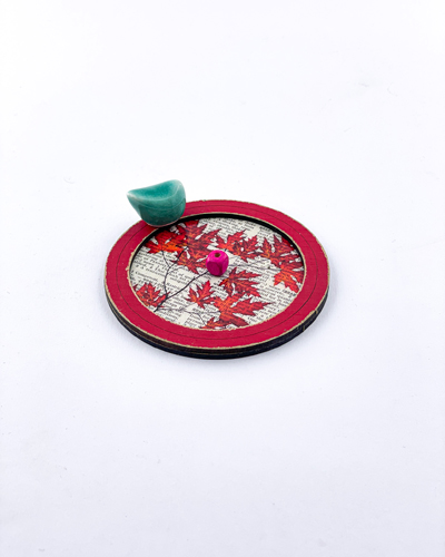 جاعودی چوبی گرد همراه با پرنده سرامیکی _ طراحی هنری در رنگبندی متنوع