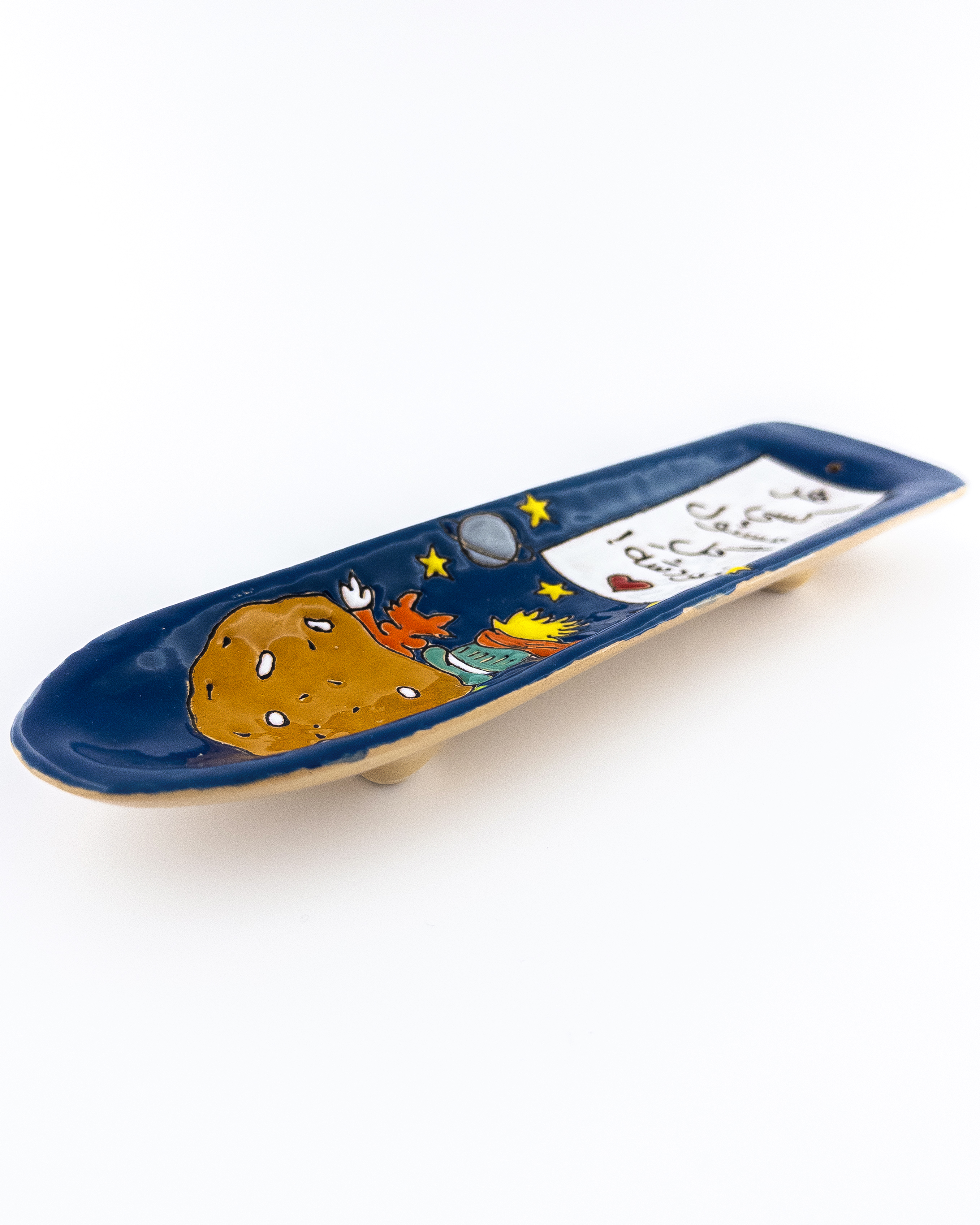 اگر از آن دسته افرادی هستید که با هر عطر عود، در خیال و آرامش غرق میشوید، این اثر هنری با دستان هنرمندان ایرانی از سفال مرغوب و لعاب حرارتدیده ساخته شده و روی آن تصویری دلانگیز از شازده کوچولو و روباه با جملهی معروف از شازده کوچولو: هرکسی مسئول گل خودشه!»
