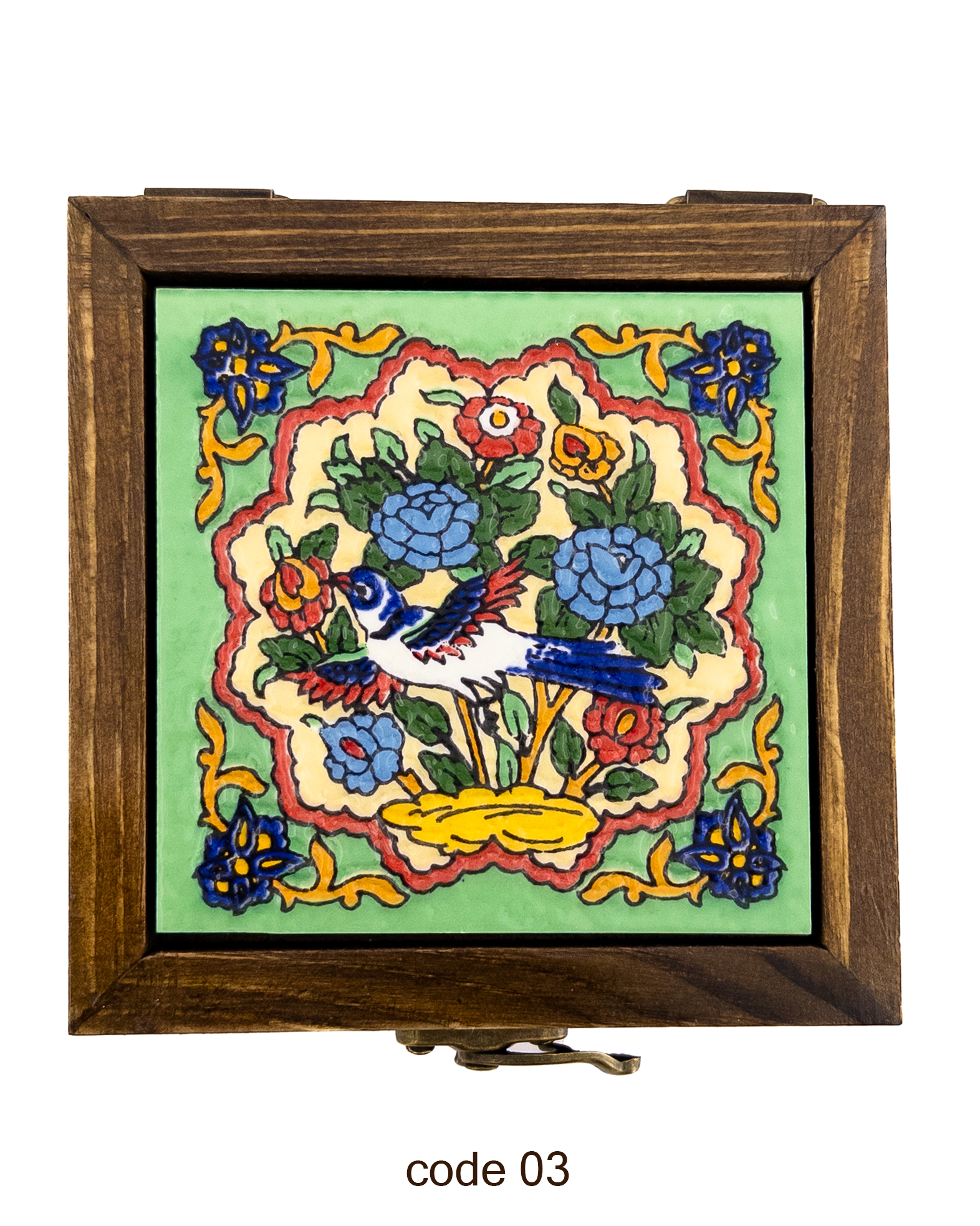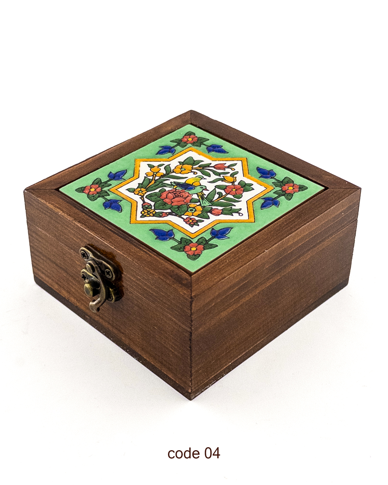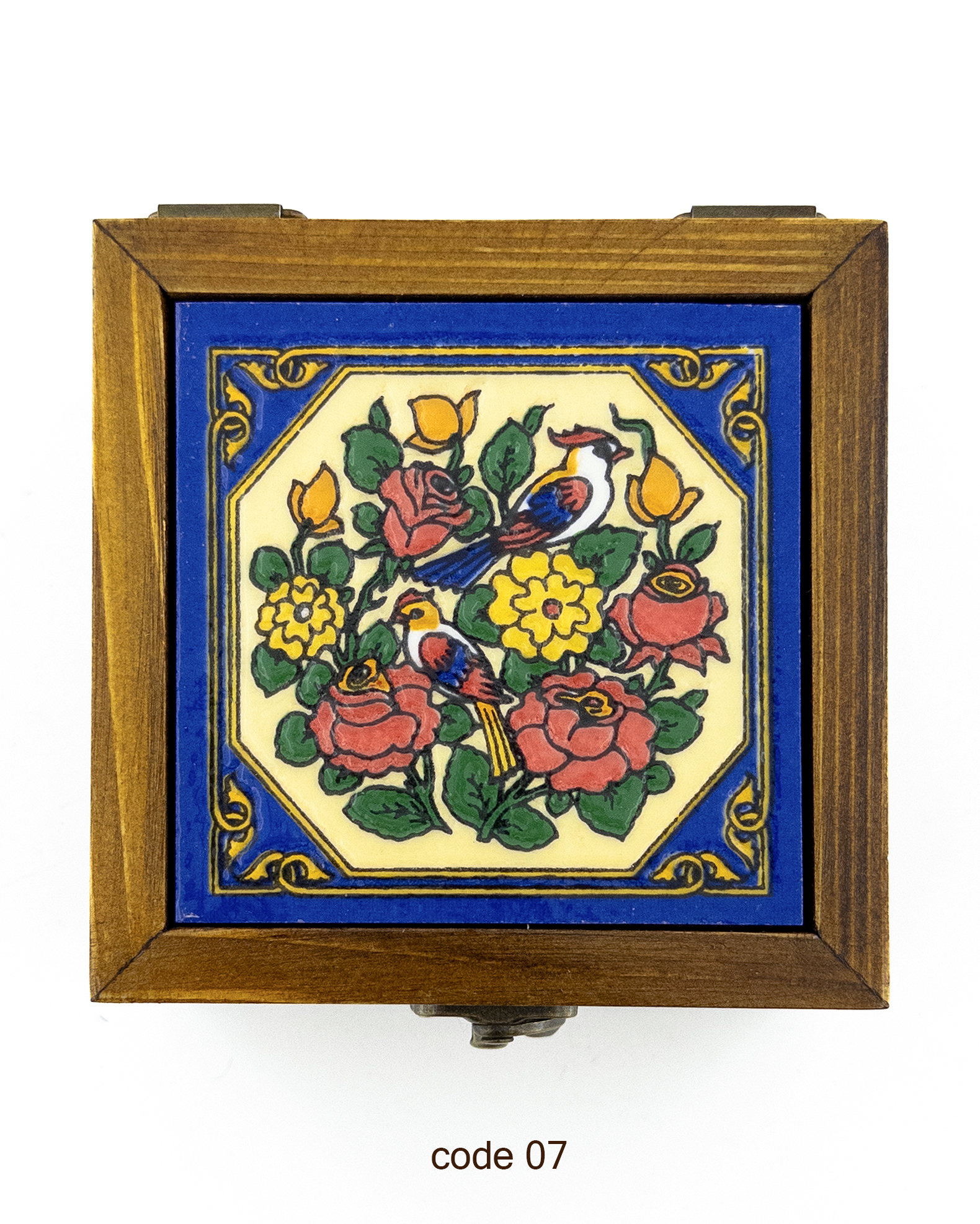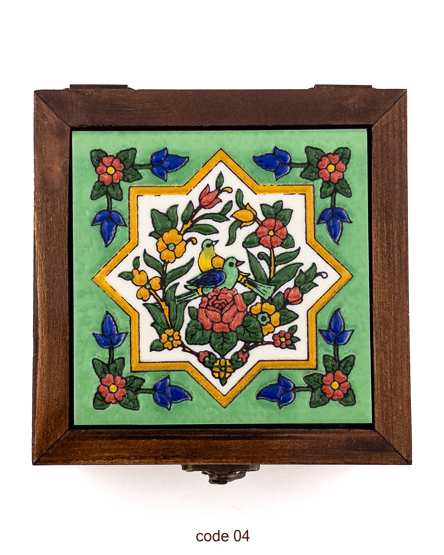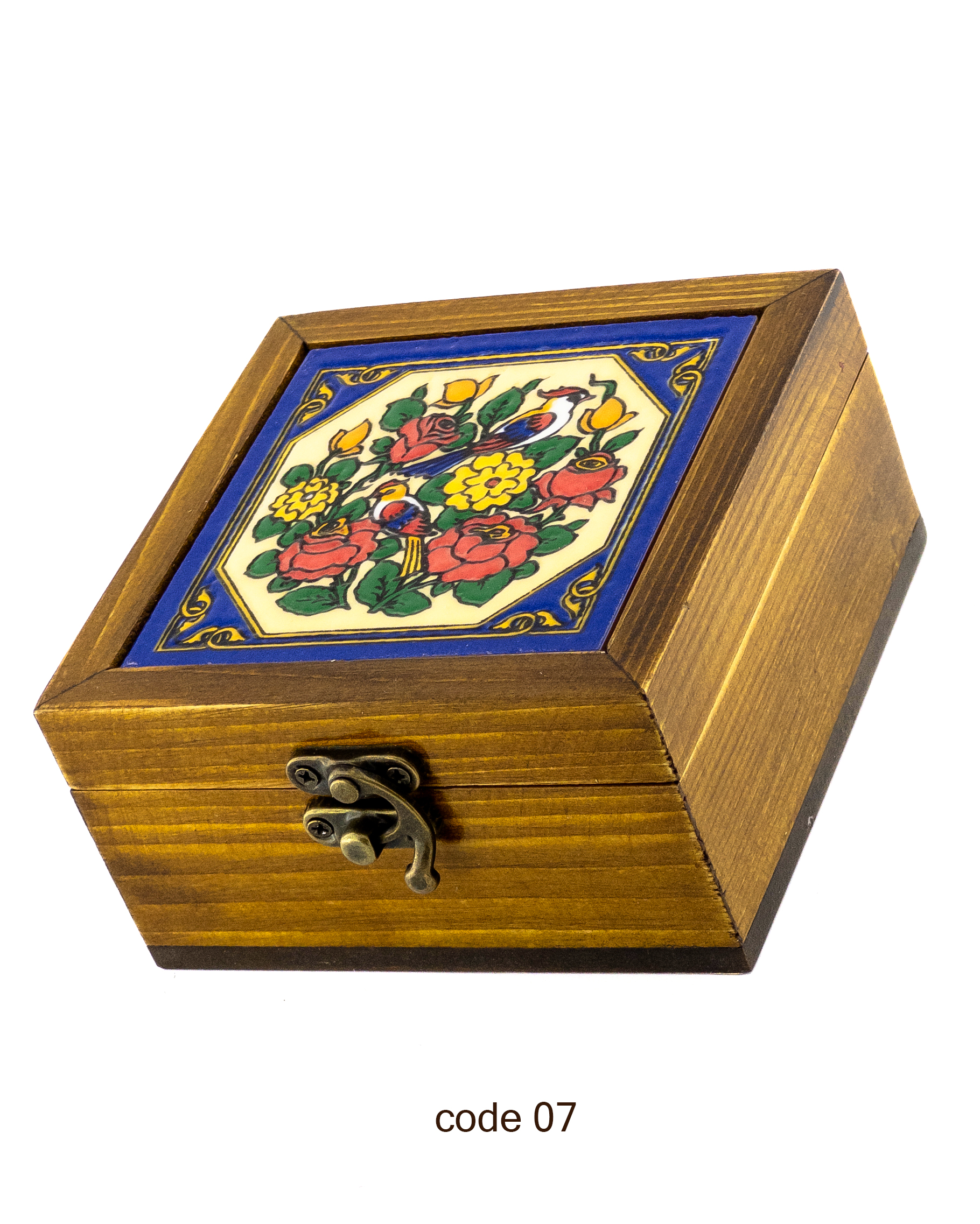 Handcrafted Wooden Box with Haft-Rang Tile – Gol-o-Morgh Design,