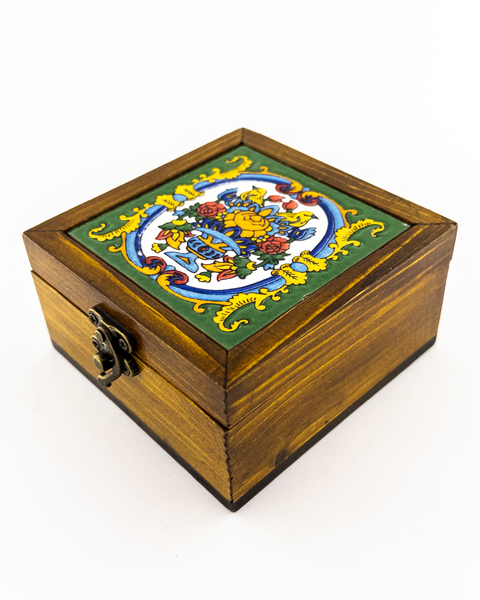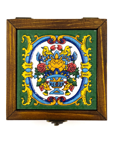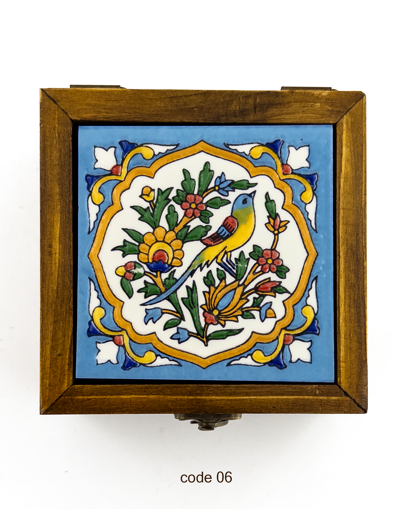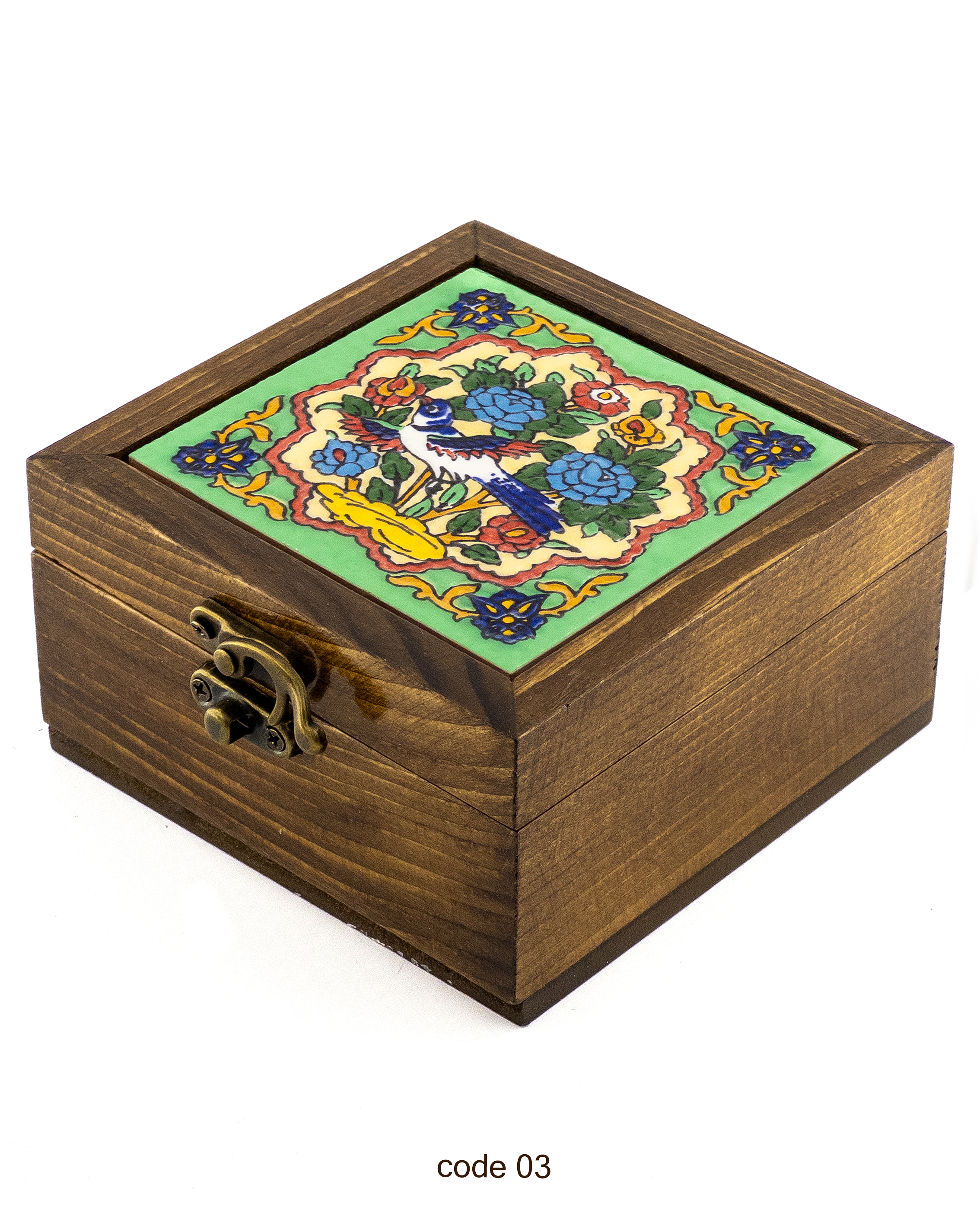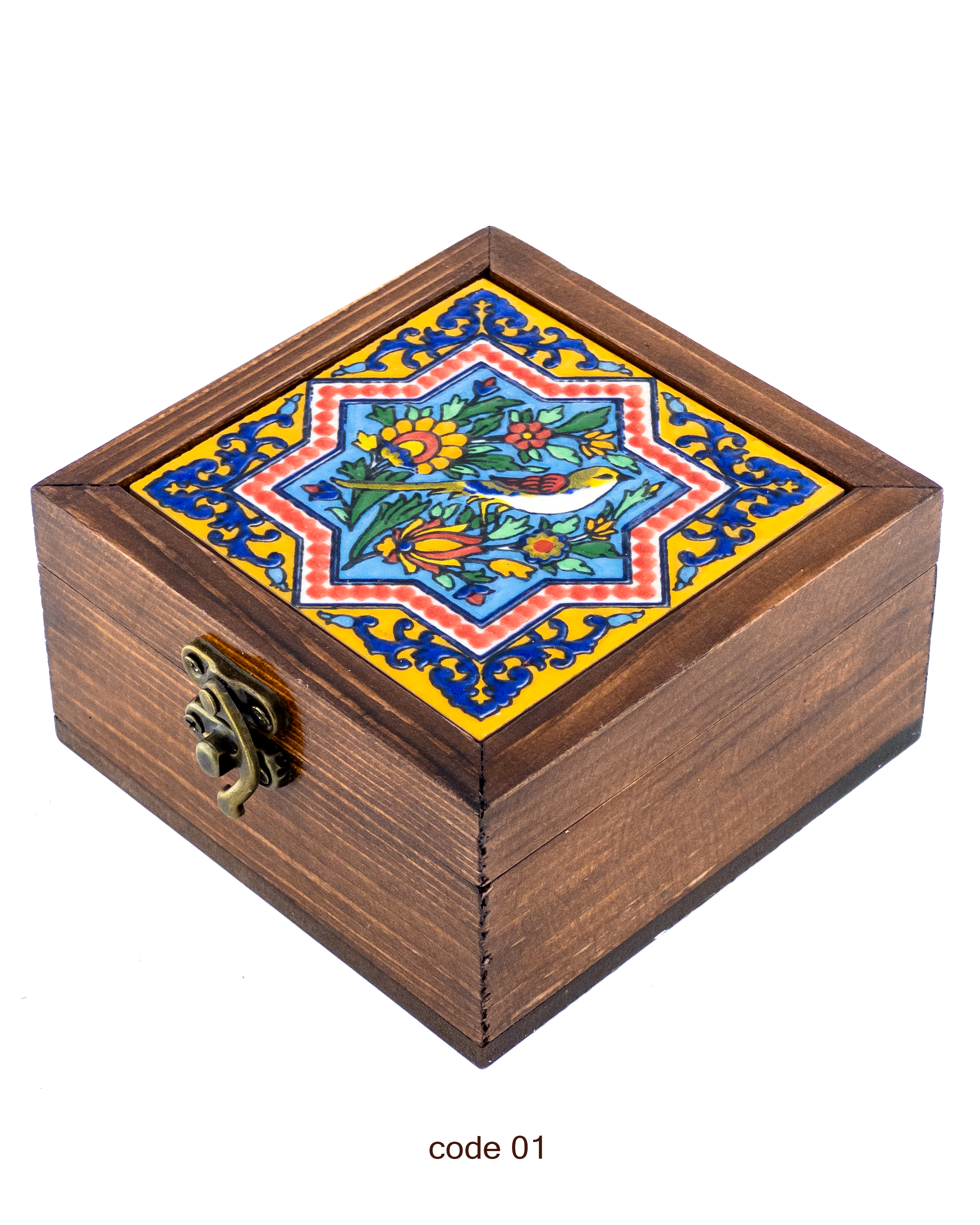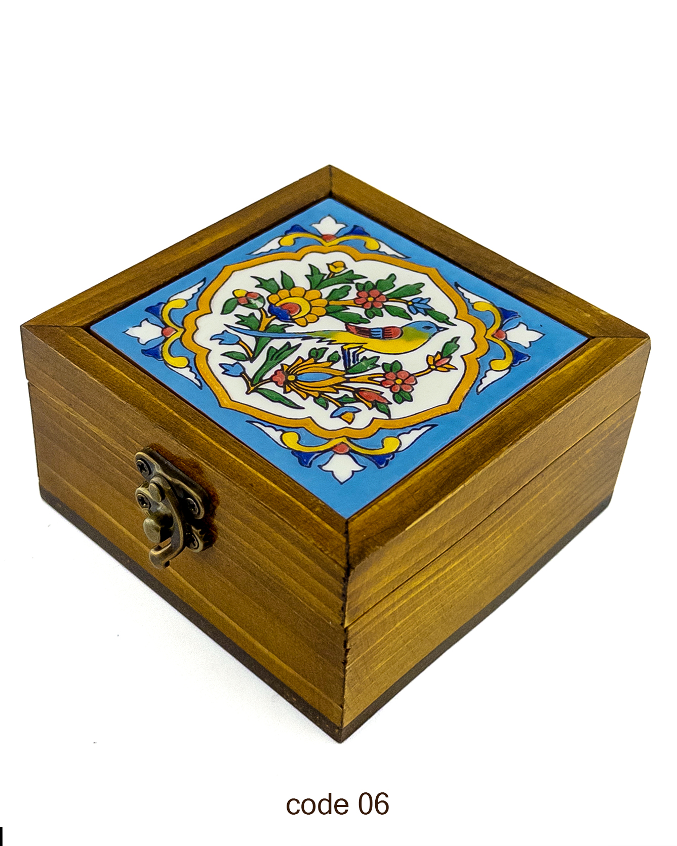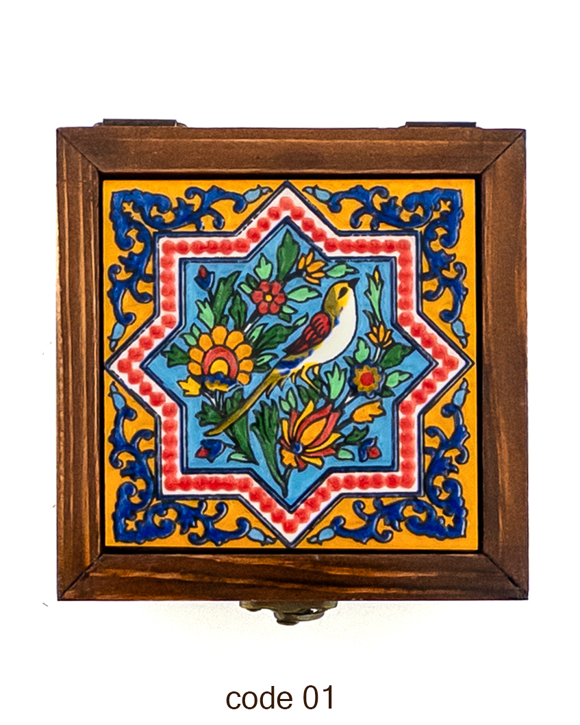 Handcrafted Wooden Box with Haft-Rang Tile – Gol-o-Morgh Design,