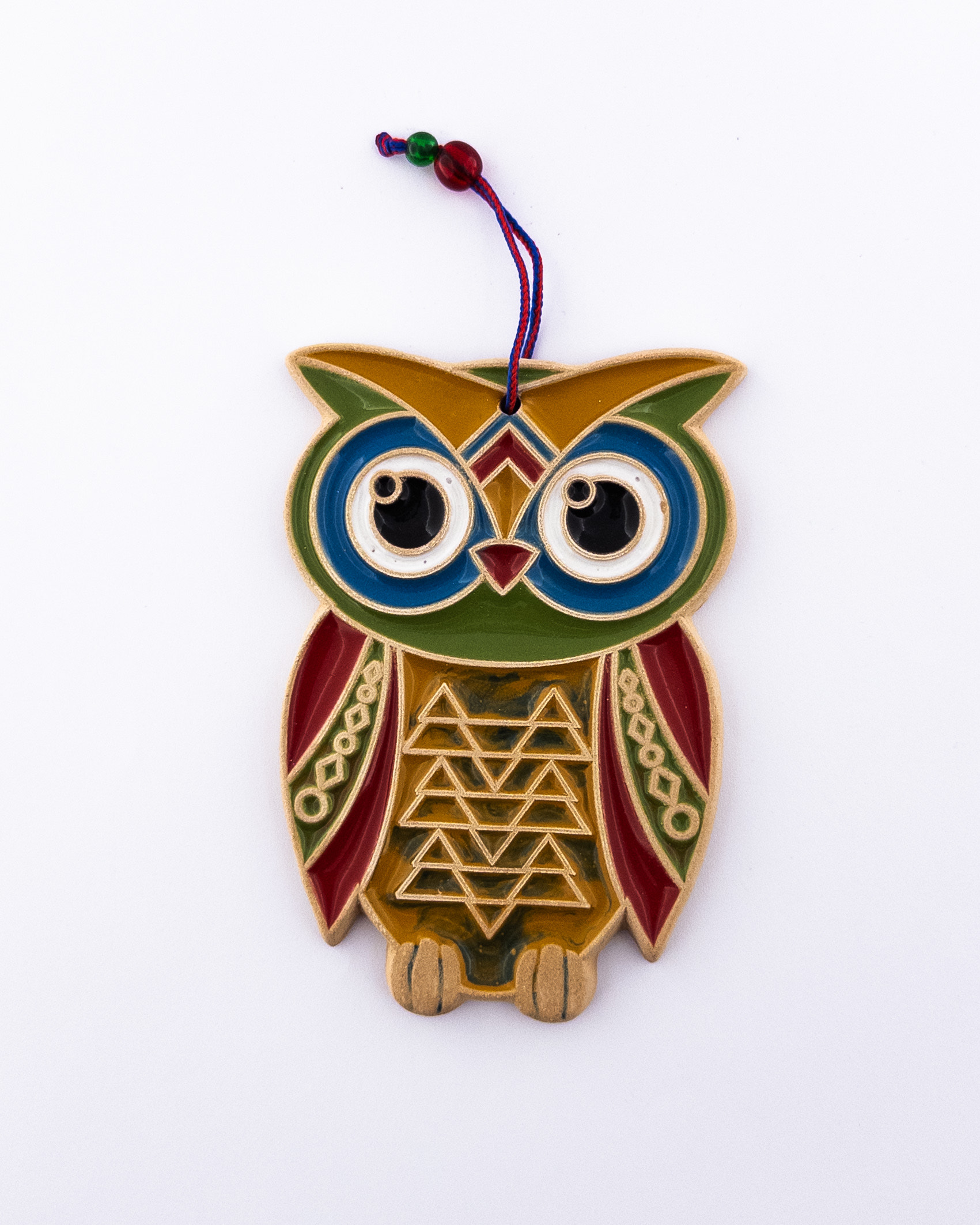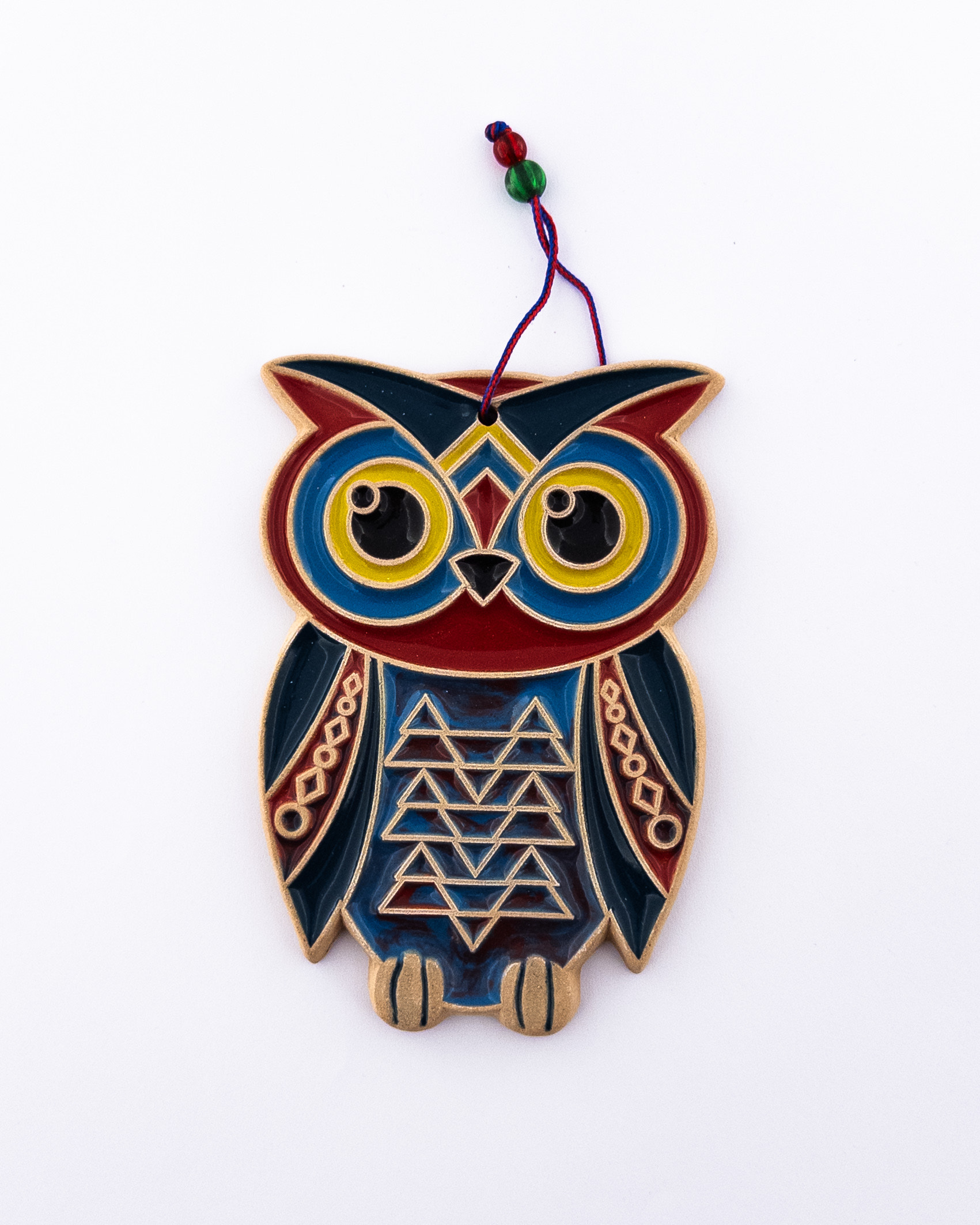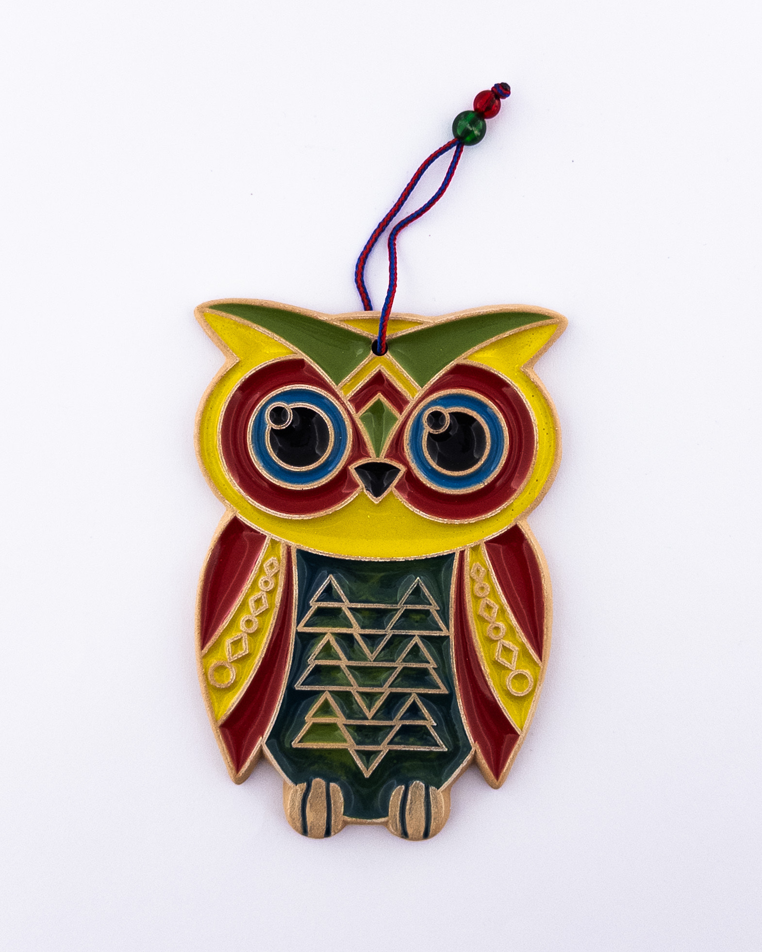 Colorful Clay Owl Hanging with Geometric Patterns – Symbol of Wisdom & Artistic Decor