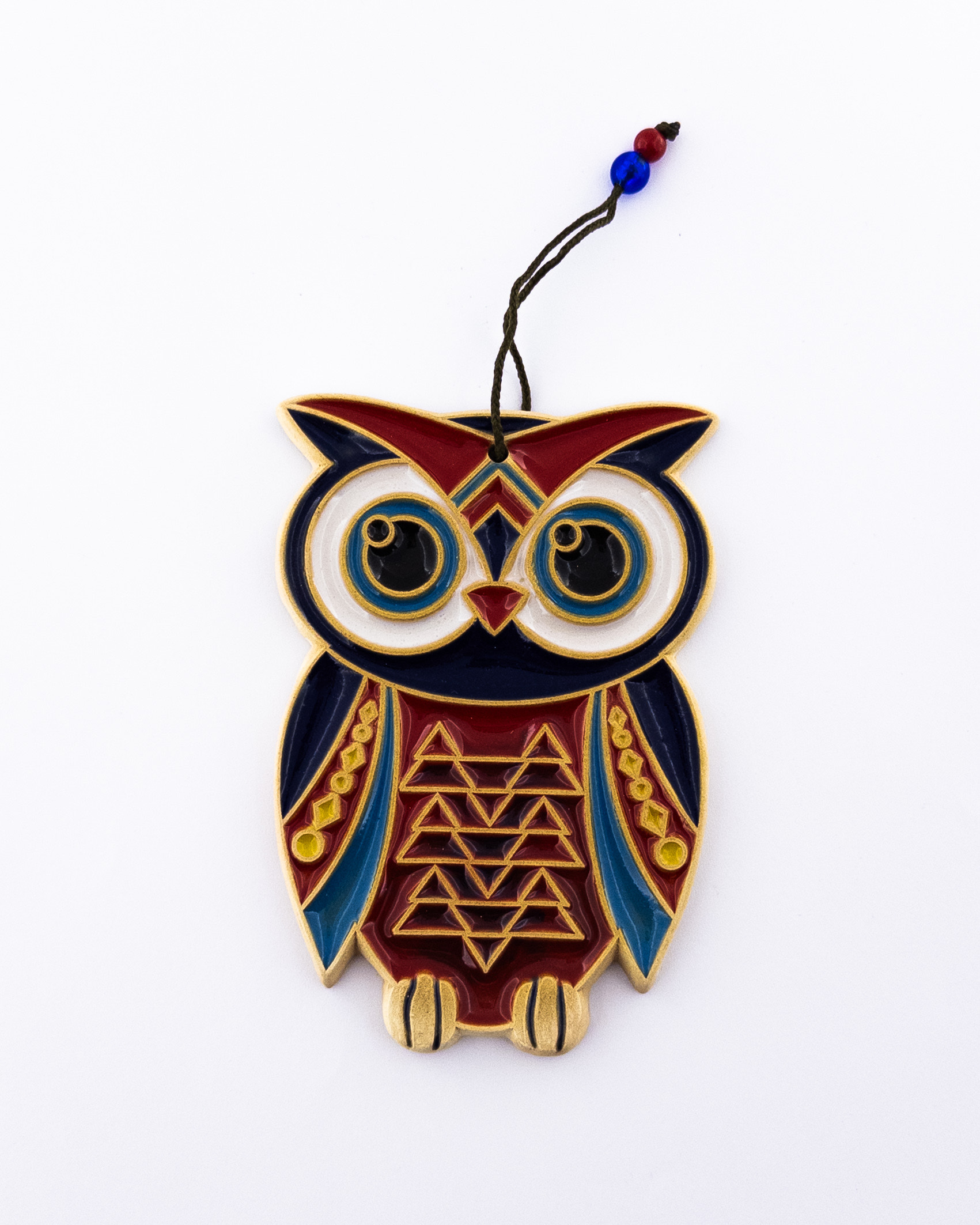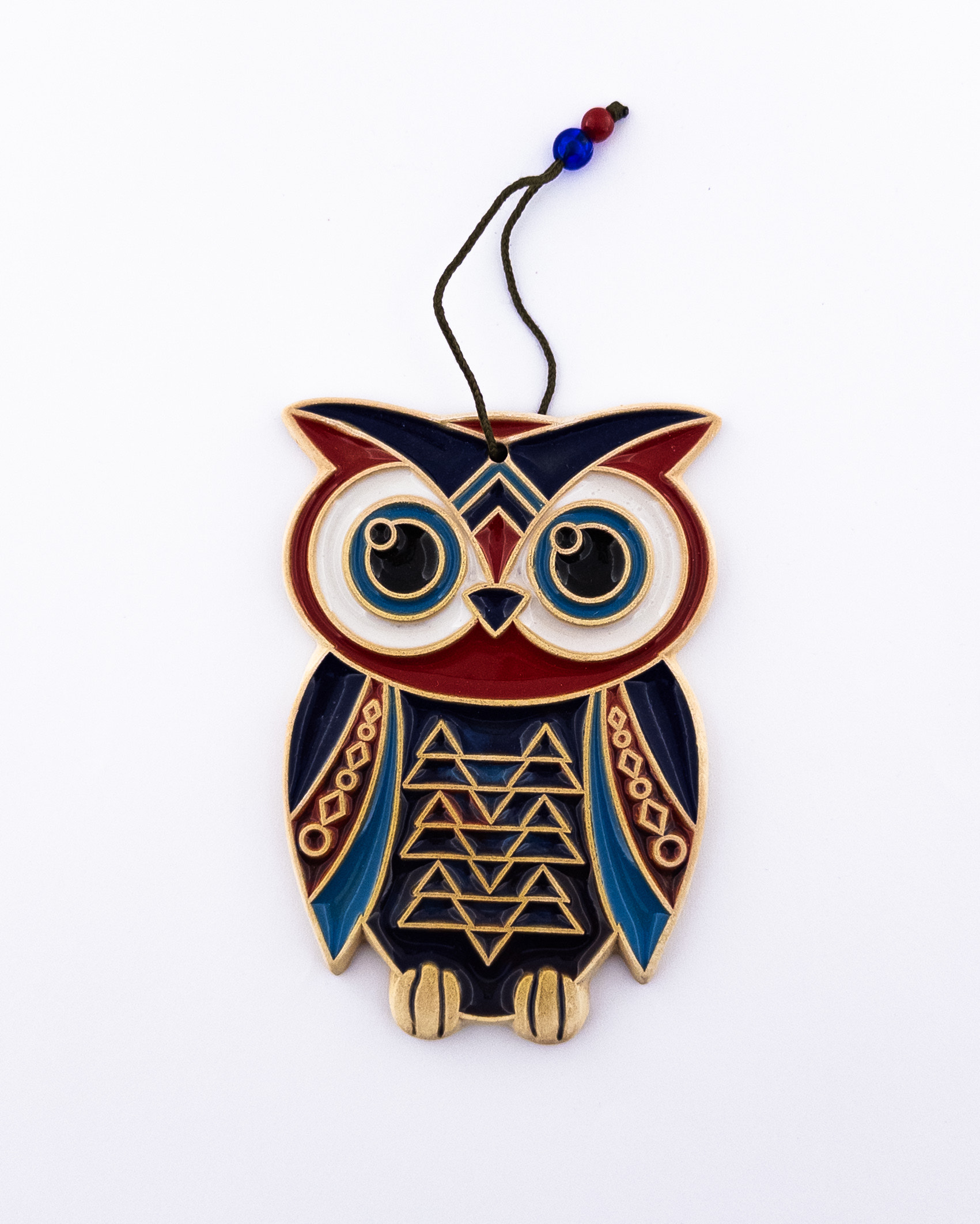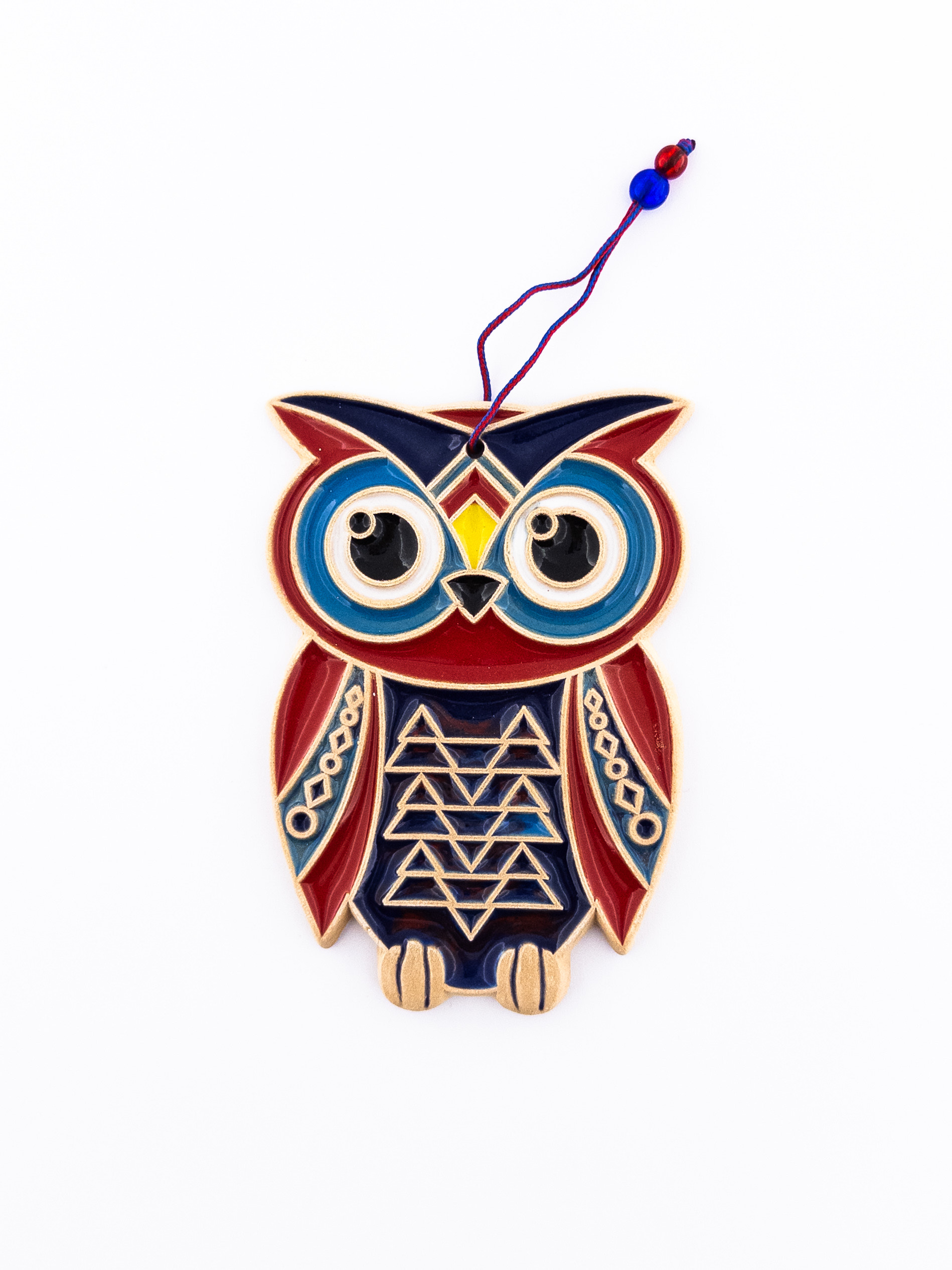 Colorful Clay Owl Hanging with Geometric Patterns – Symbol of Wisdom & Artistic Decor