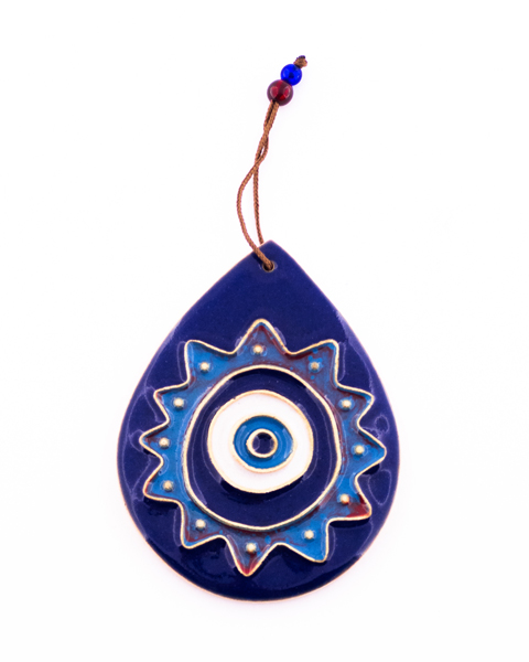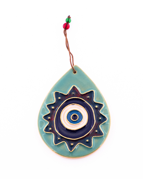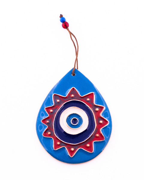 Handmade Tear-Shaped Clay Wall Hanging – Nazar Eye Design