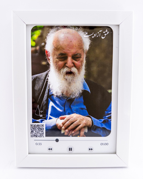 تابلو صوتی (فرکانس) با تصویر هوشنگ ابتهاج و خوانش قطعه «عشق آزادیست»–دکور ادبی، هنری و ماندگار