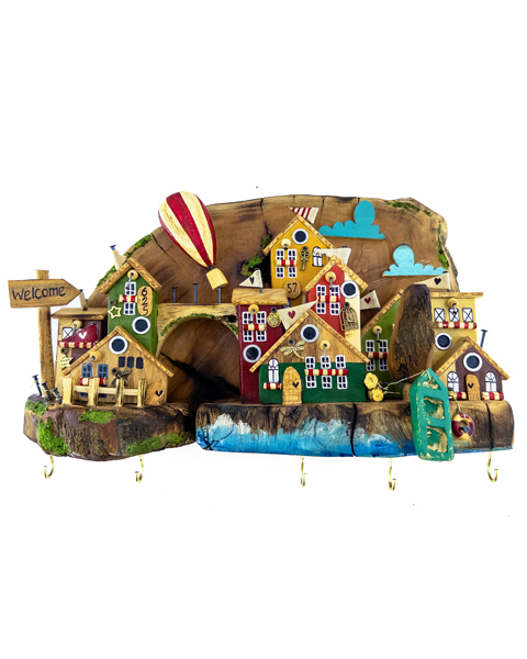 Handmade Wooden Key Holder – Coastal Seaside Village Design