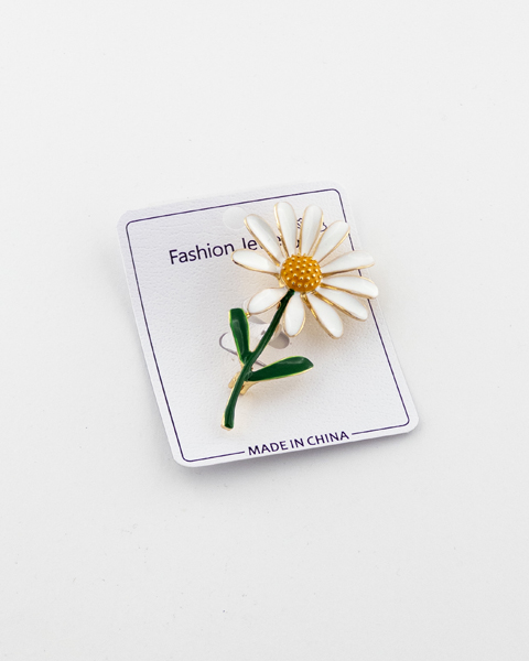 سنجاق سینه مینیمال با طرح ظریف گل بابونه، مناسب استایل ساده و شیک روزانه.