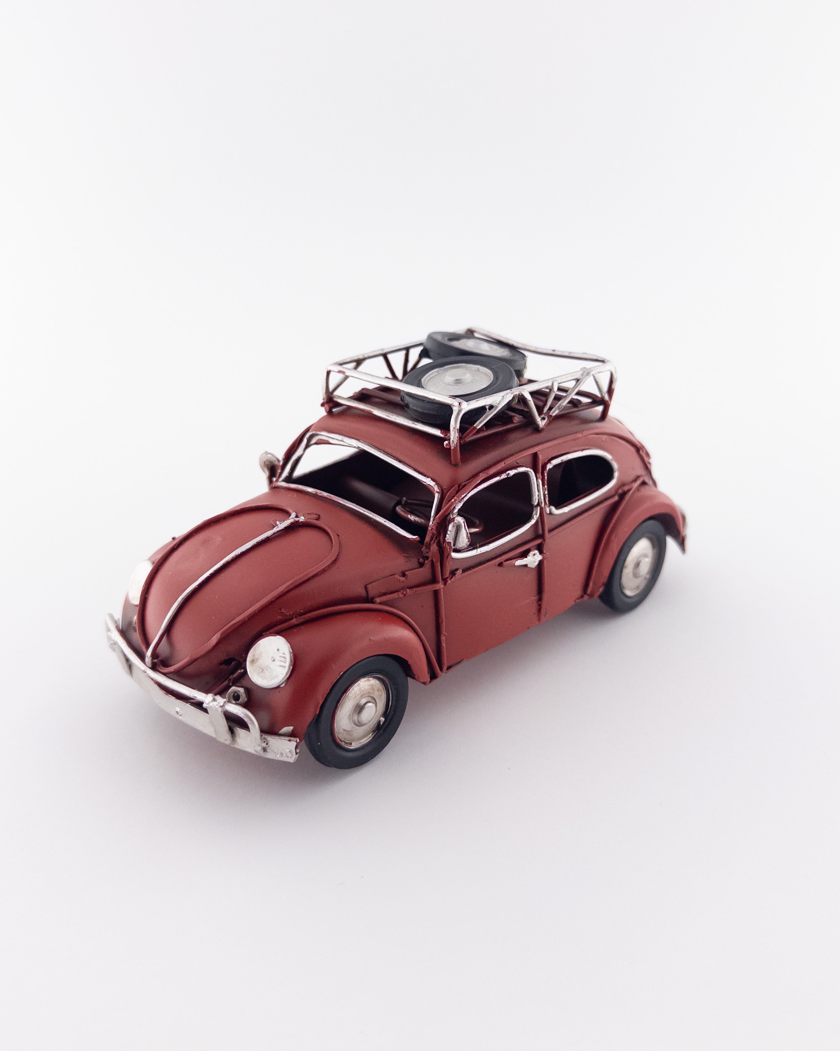 Handcrafted Red Volkswagen Metal Car with Roof Rack | Nostalgic Collectible Model