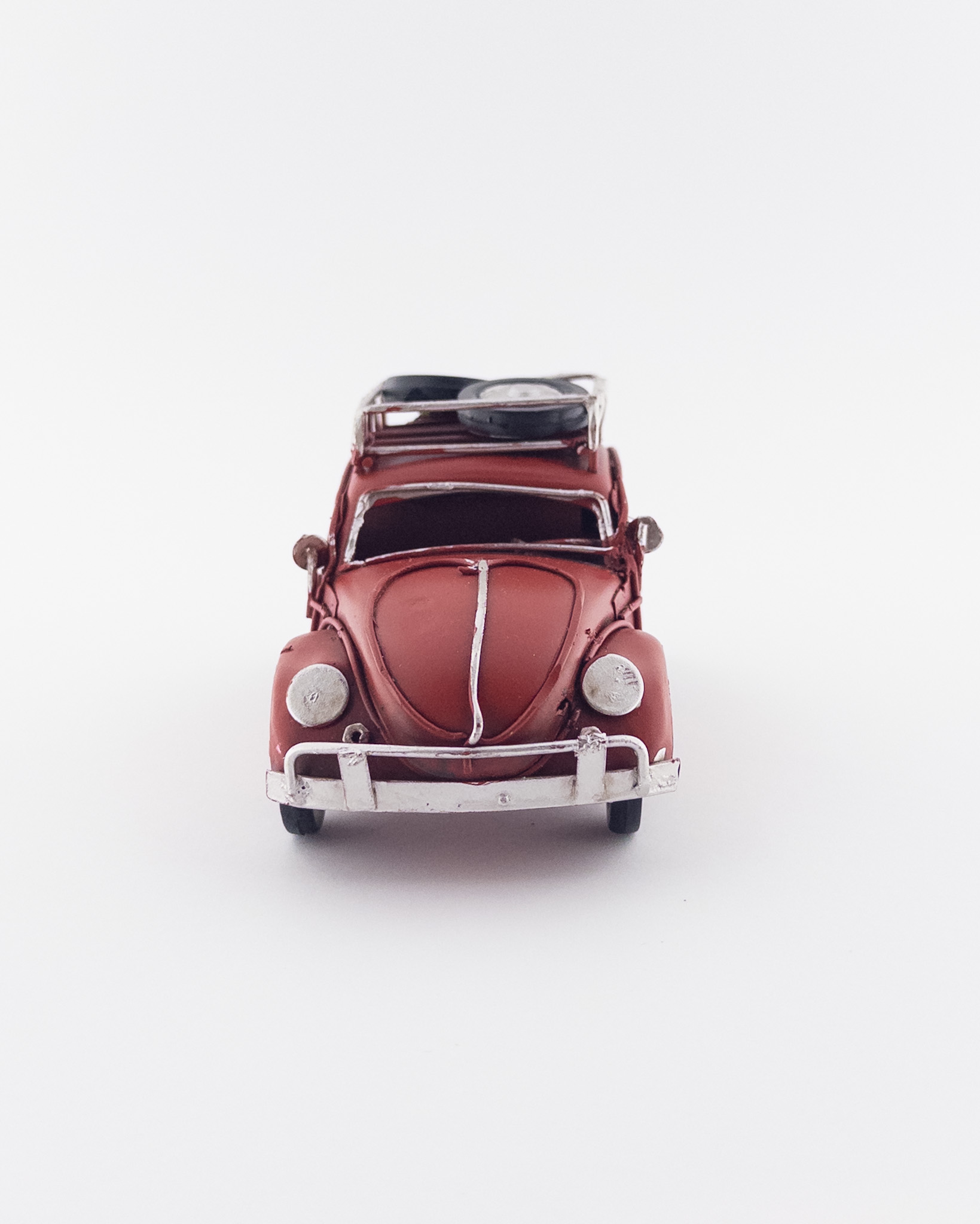 ماکت ماشین فولکس قرمز فلزی دستساز با باربند | مدل نوستالژی کلکسیونی