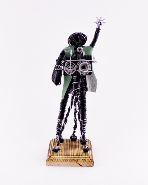 یک مجسمه هنری دستساز از سیمهای مفتولی با طراحی خلاقانه عکاس؛ مناسب برای دکور میز کار، استودیو و هدیهای خاص برای علاقهمندان به عکاسی و هنر.