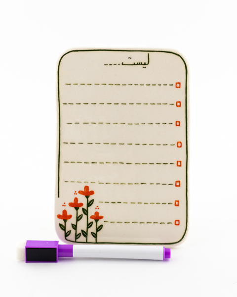 مگنت روی یخچالی سرامیکی طرح لیست خرید با نقاشی زیرلعابی همراه با ماژیک