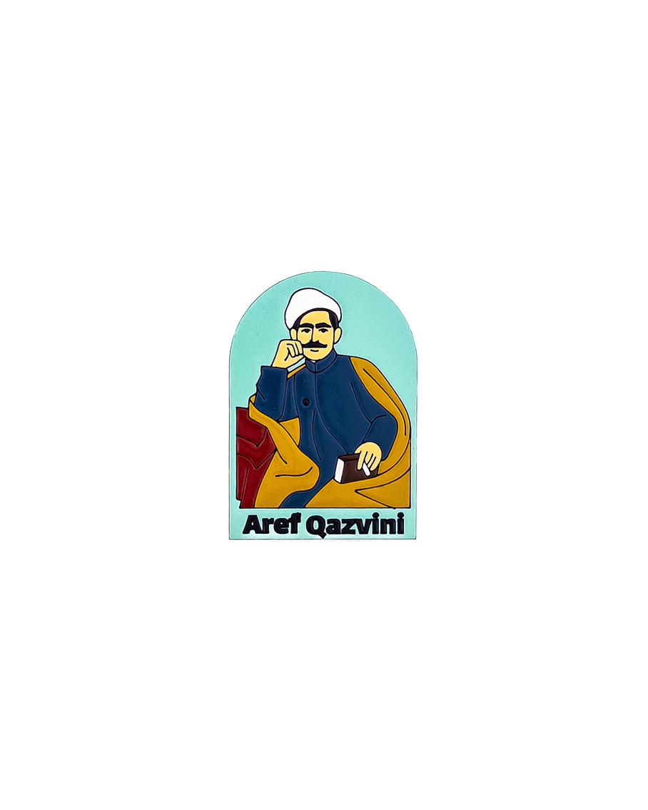 این مگنت چوبی دستساز، تلفیقی از هنر معاصر و هویت تاریخی ایران است که با الهام از چهرهی عارف قزوینی، شاعر، تصنیفساز و از مفاخر ماندگار شهر قزوین خلق شده است. هر قطعه با دقت بالا روی چوب طبیعی ساخته شده و نقاشی آن بهصورت دستی و با رنگهای اکرلیک باکیفیت انجام شده است؛ بنابراین هر مگنت، اثری منحصربهفرد و غیرتکراری محسوب میشود.