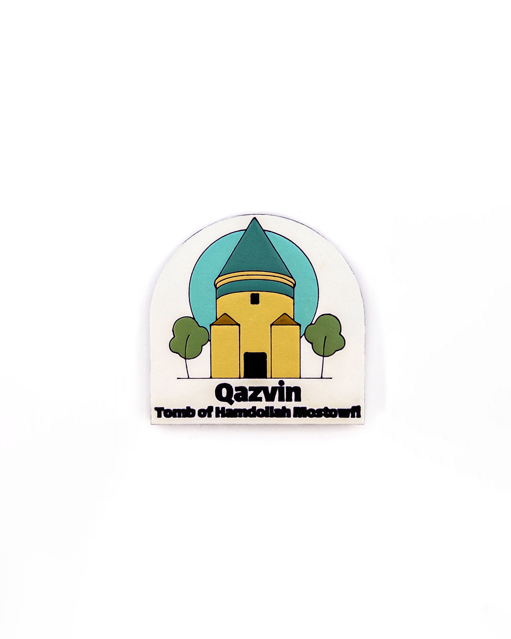 مگنت چوبی نقاشیشده دستساز با نماد قزوین | طرح آرامگاه حمدالله مستوفی