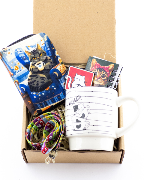 Cat Lovers’ Gift Box – Mug, Glasses Chain, Notebook, Wallet & Cat-themed Pin