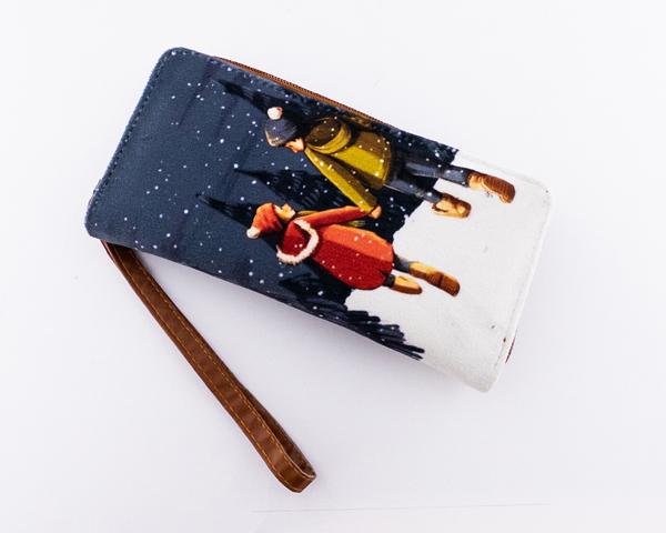 کیف پول دستی با بند مچی و تصویر زمستانی، مناسب برای استفاده روزمره، هدیهای خاص و اکسسوریای با حالوهوای داستانی و فصلمحور.