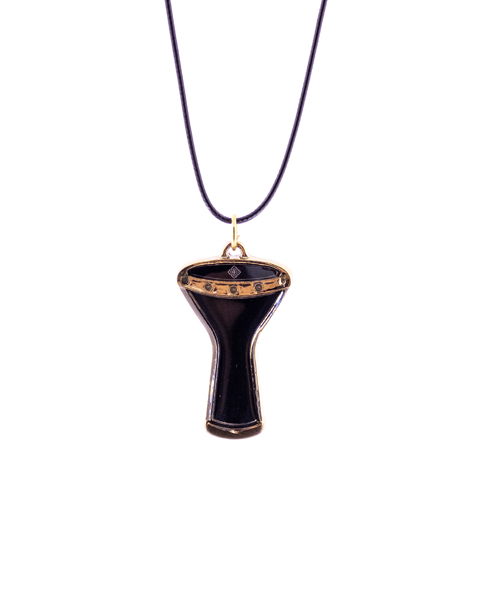 گردنبند زیبا و خاص با طرح داربوکا (تمپو)، مناسب برای علاقهمندان به موسیقی سنتی و سازهای کوبهای.