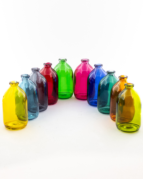 گلدان رنگی شیشهای استوانه دهانه باریک ؛ انتخابی زیبا و ظریف برای گیاهان خشک