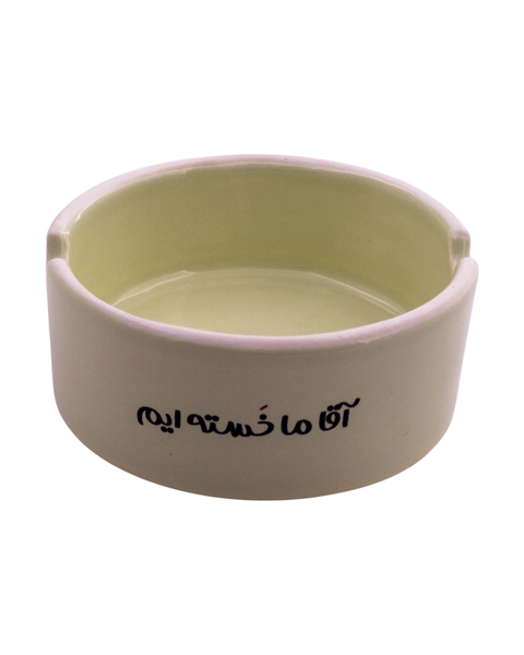 زیرسیگاری سرامیکی با نوشتهی «آقا ما خستهایم»، مناسب برای لحظات استراحت، دکور خاص یا هدیهای با حس همدلی و شوخی.