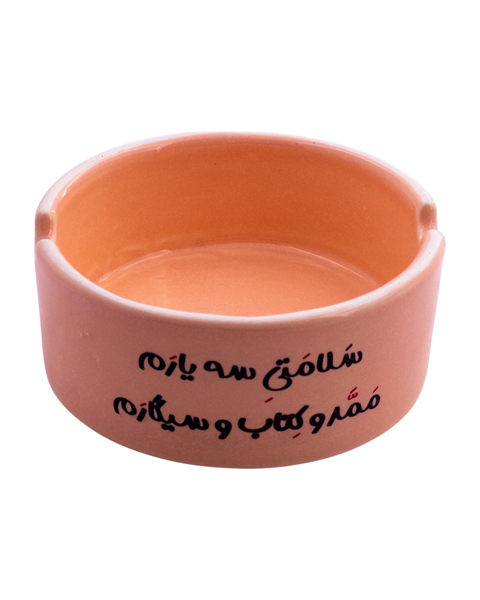 این زیرسیگاری سرامیکی فانتزی، فقط یک وسیلهی کاربردی نیست—بلکه یک قطعهی هنری با حس شوخطبعی و نوستالژی است. نوشتهی فارسی «سلامتی سه یارم ممد و کتاب و سیگارم» روی بدنه، لبخند را به لب هر بینندهای میآورد و فضایی گرم و صمیمی ایجاد میکند.