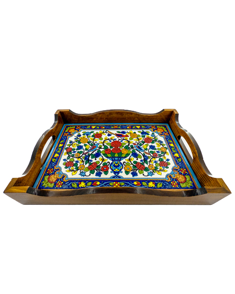 تمام مراحل ساخت از انتخاب چوب تا جاگذاری کاشی و پرداخت نهایی، با دقت و عشق بهصورت کاملاً دستساز انجام شده است. این سینی تنها یک ابزار پذیرایی نیست؛ یک اثر هنری است که میتواند روی هر میز یا کنج خانه، تبدیل به نقطه کانونی دکوراسیون شود.