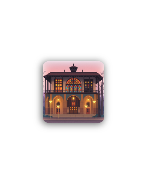 این مگنت یخچالی مربعی چهلستون قزوین با الهام از عمارت تاریخی کلاهفرنگی، یکی از شاخصترین بناهای تاریخی قزوین در دوره صفوی و منتسب به شاه طهماسب صفوی طراحی شده است.