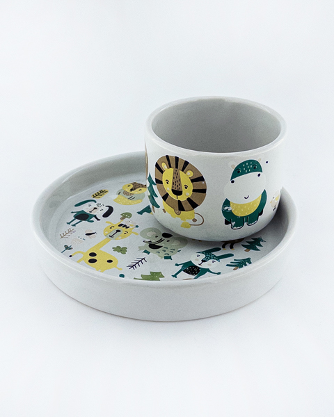 Ceramic Kids Tableware Set – Jungle Animals (Deer, Elephant, Giraffe & Friends) Design