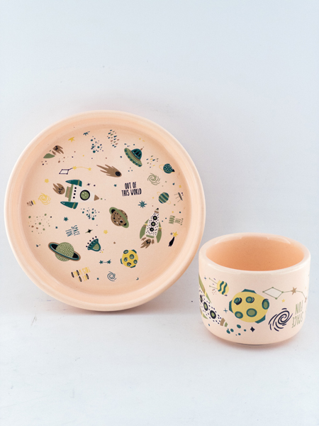 Ceramic Kids Tableware Set – Astronaut, Rocket & Space Design