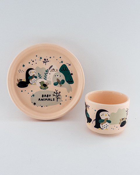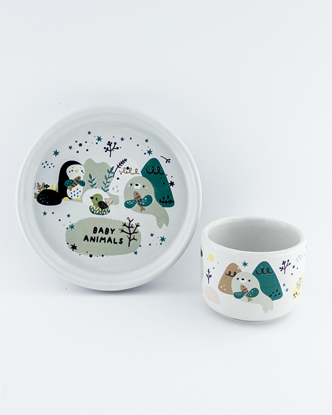 Ceramic Kids Tableware Set – Seal & Penguin in the Arctic Design