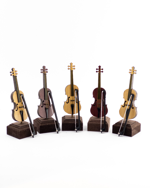 ویولن مینیاتوری دستساز از MDF دکوری سبک و هنری، مناسب علاقهمندان موسیقی و هدیهای خاص. قابل سفارش بصورت تک و عمده