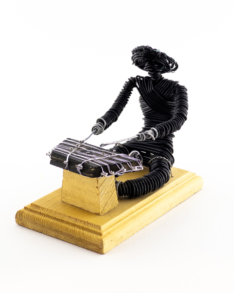 Handmade Wire Sculpture of Santoor Player on Wooden Base