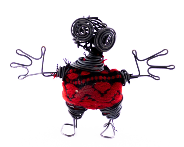 Handmade Wire Figurine with Red-Black Carpeted Torso – Expressive Abstract Sculpture
