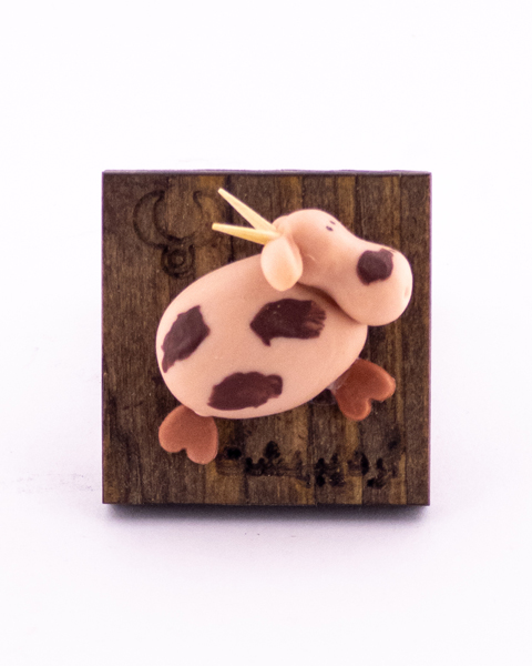 مگنت خمیری دستساز ماه تولد اردیبهشت با نماد گاو (ثور) روی پایه چوبی– هدیه برای متولدین اردیبهشت