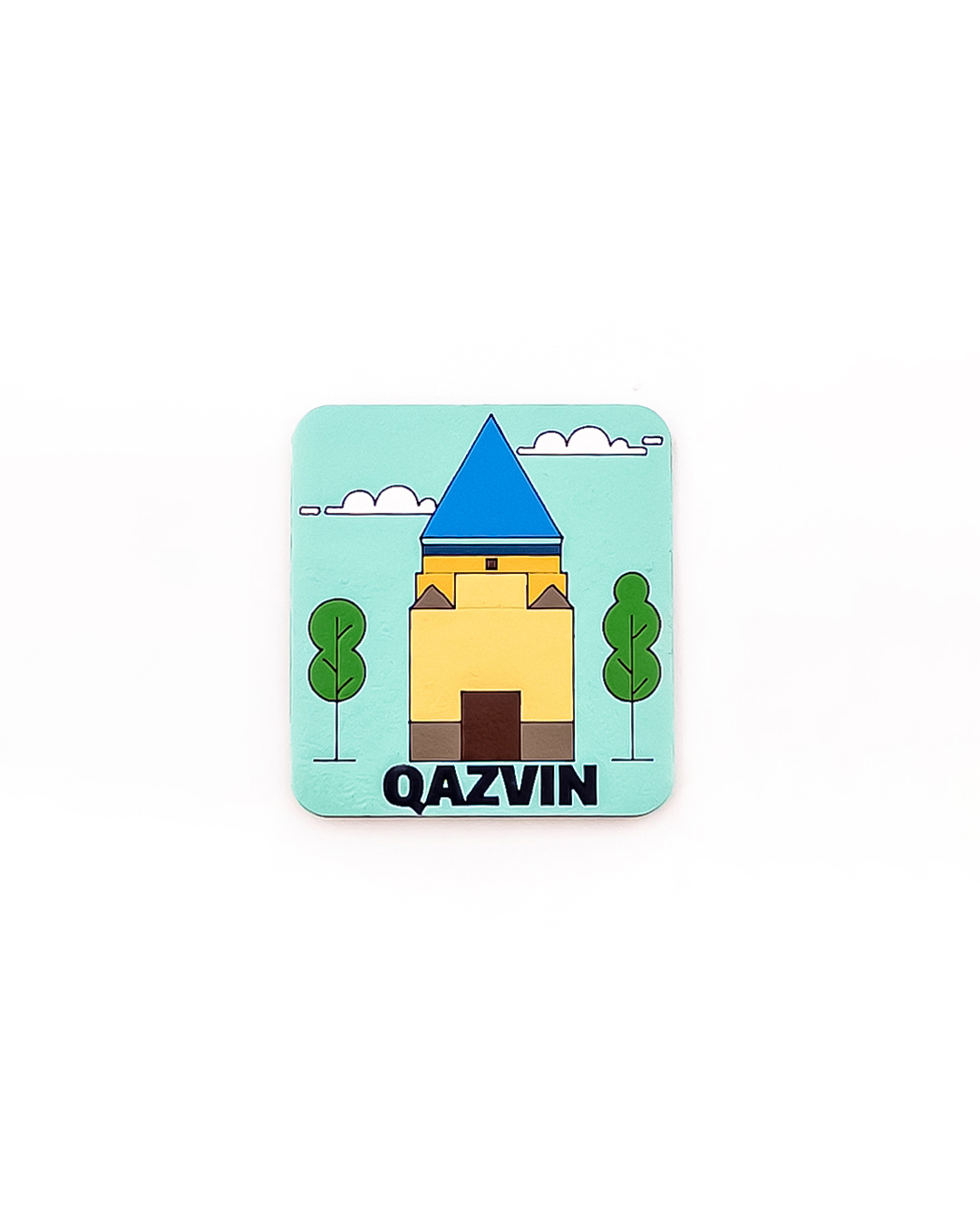 مگنت هنری دستساز با نقاشی اکریلیک از بقعه تاریخی حمدالله مستوفی قزوین؛ ترکیبی از هنر، اصالت و یادگاری ماندگار از شهر قزوین.