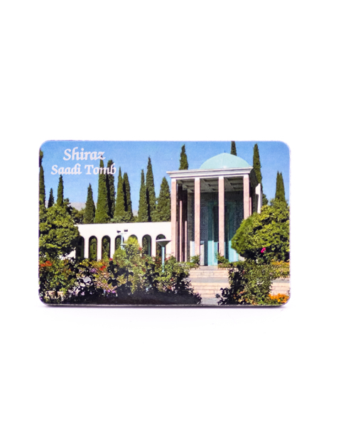مگنت یخچالی با تصویر آرامگاه سعدی، شاعر بزرگ ایرانی، مناسب برای تزئین یخچال، هدیه فرهنگی یا یادگاری سفر به شهر شعر و ادب.