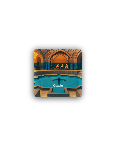 مگنت یخچالی مربعی با الهام از حمام تاریخی قجر قزوین، از بناهای شاخص دوره قاجار؛ انتخابی فرهنگی برای علاقهمندان به بناهای تاریخی قزوین و مگنتهای الهامگرفته از معماری ایرانی.