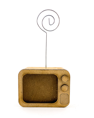 تلویزیون چوبی دکوری با گیره عکس و یادداشت – مدل نوستالژیک و کاربردی برای دکور و هدیه