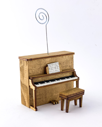 این پیانو چوبی کوچک، با گیرهی فلزی تعبیهشده در آن، قابلیت نگهداری عکسهای خاطرهانگیز، یادداشتهای روزانه یا کارتپستالهای کوچک را دارد. میتوان از آن روی پیانو، میز کار، قفسههای کتابخانه یا حتی دکور اتاق خواب استفاده کرد. حضور این قطعه دکوری زیبا، نه تنها حس نوستالژی دلنشینی به فضا میبخشد بلکه شخصیت و سلیقهی صاحب آن را نیز نشان میدهد.