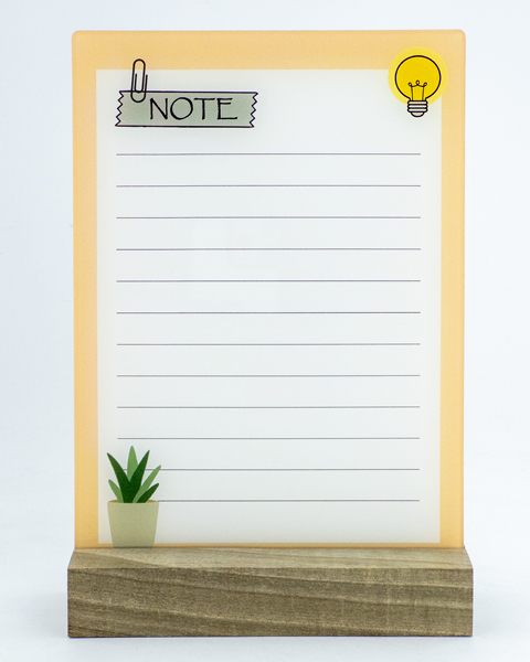 پلنر شفاف اکریلیک طرح Note با پایه چوبی – تخته یادداشت روزانه قابل نوشتن و پاکشدن