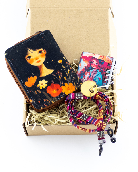 پک هدیه دخترانه خاص | دفترچه، بند عینک، انگشتر برنجی و کیف پول