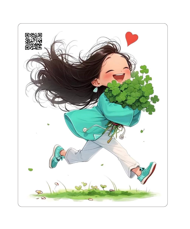 کارت پستال صوتی طرح دختر خندان با موهای بلند و شبدر | با QR Code اختصاصی