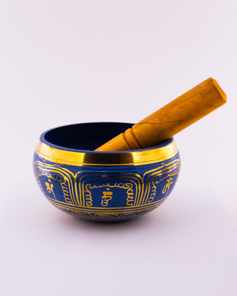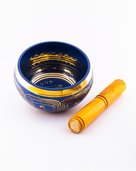 Blue Tibetan Singing Bowl with Golden Motifs – Meditation & Mindfulness Instrument