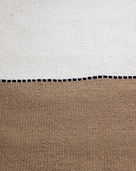 کوسن دستساز مربع ۴۵ سانت دو رنگ سفید و شتری، ترکیبی از هنر دست و طراحی مینیمال است. نخ پنبه طبیعی و الیاف درشتبافت، حس گرمی و راحتی را به فضای منزل شما اضافه میکند.