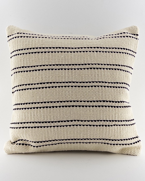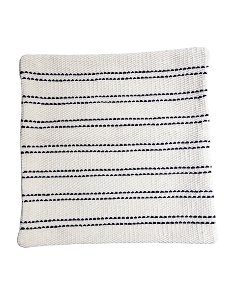 کوسن دستساز مربع ۴۵ سانت سفید و مشکی گرهدار – دکور مینیمال و بوهو